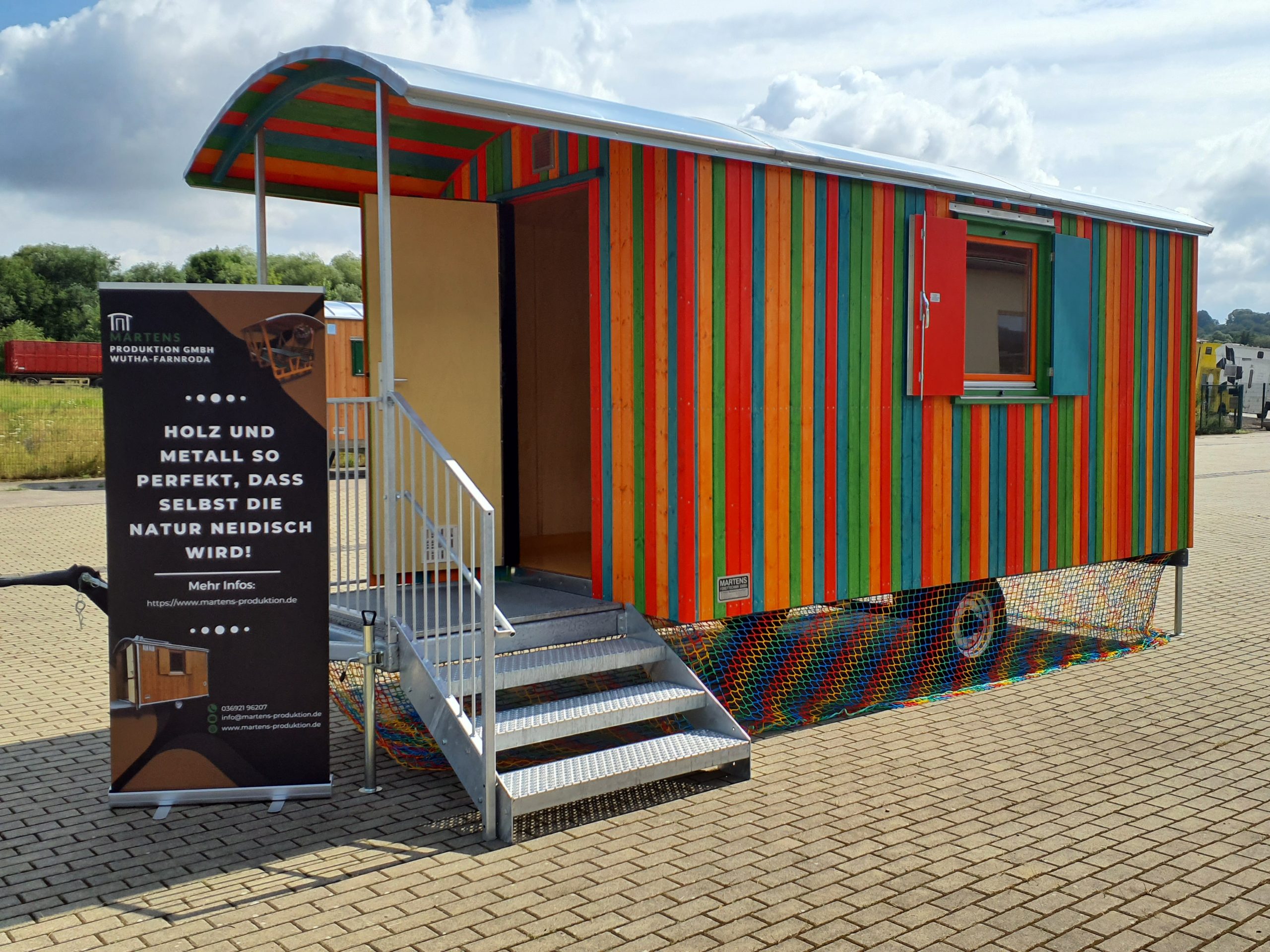 Die Villa Kunterbunt als Bauwagen ist ein farbenfroher Wohlfühlort, der Kreativität und Geborgenheit harmonisch verbindet. Ideal für Pausen, kleine Zusammenkünfte oder als inspirierender Rückzugsraum. Robust konstruiert, mit Liebe zum Detail gestaltet und vielseitig einsetzbar, bringt sie ein Stück Abenteuer, Wärme und Individualität an jeden Standort.